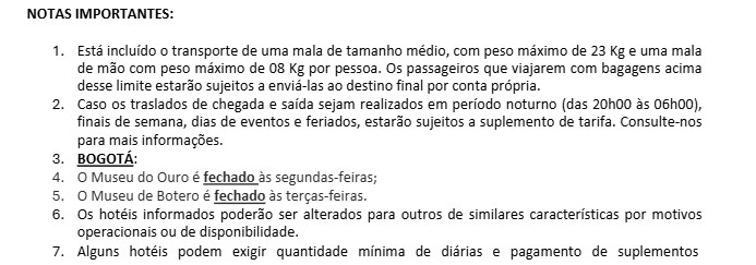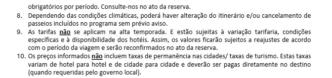* A tradicional gorjeta ao guia e/ou motorista, carregadores de malas, camareiras e etc., a critério de cada passageiro;
